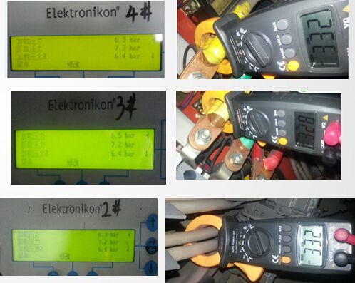 现场空压机实际运行情况:4#、3#加载运行,2#卸载运行,压力维持在6.7BAR.
